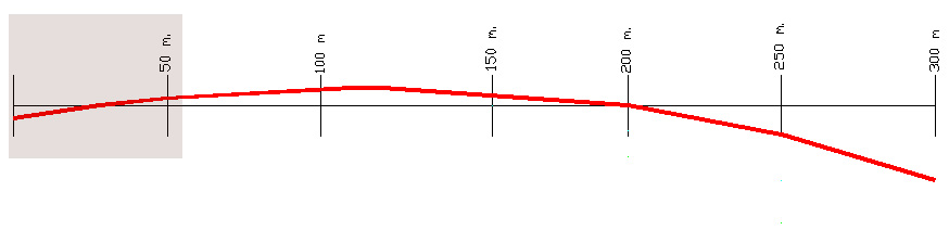 Voy a tratar de explicártelo. No se como saldrá. Te pongo una primer imagen de una trayectoria bastante común de una bala que impacta (2º cero) a 200 m. Distancia del visor al eje del cañón: 4 cm. Distancia de la bala al centro de una diana puesta a 50 m. : 2 cm. por encima:
