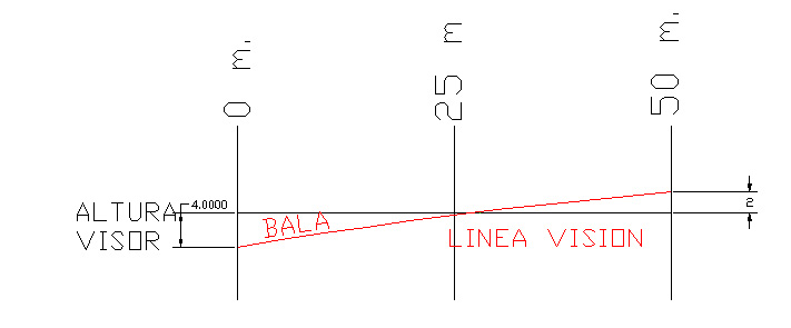 Como ves, la trayectoria de la bala pasa por debajo de la línea de visión a los 25 m.