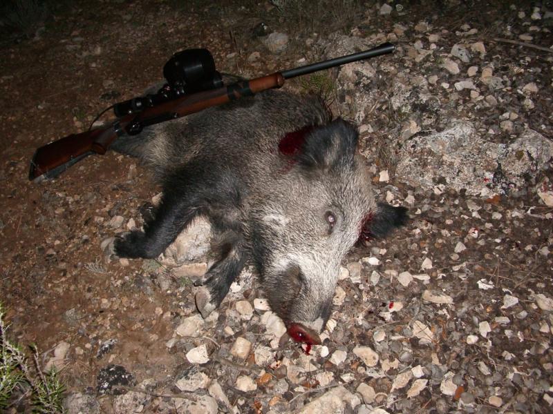 Esta claro que la colocación del tiro es fundamental, para muestra las fotos que has puesto, el primer jabalí, el que corrió 100 metros tiene el tiro en el jamón trasero, y el ultimo que no se movio ni tres metros tiene el tiro perfecto.