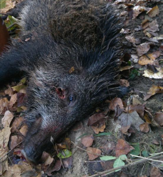 A mi entender que la suerte ha sido que ha tocado hueso ya que si atraviesa parte blanda con esa bala le haces un sedal y se te muere por los cerros de Úbeda.