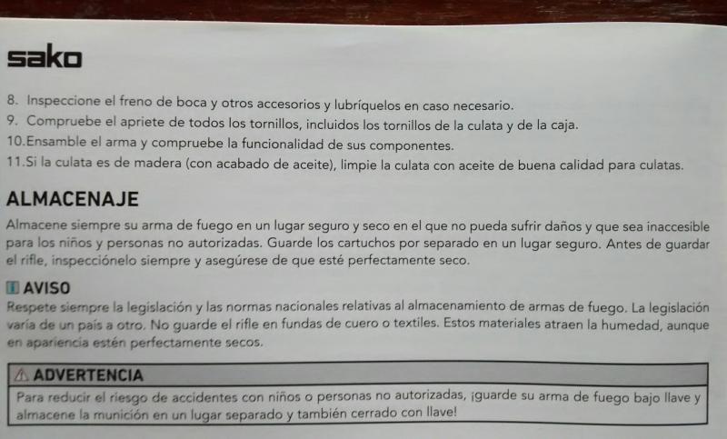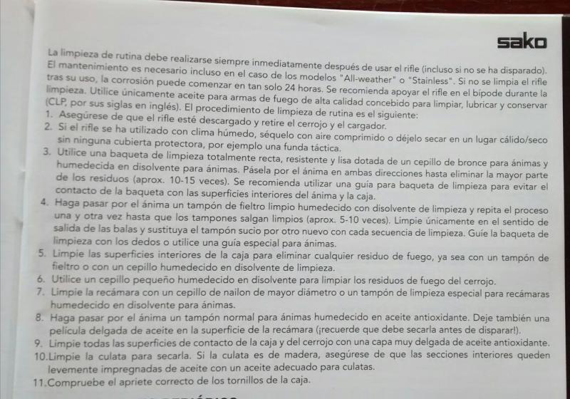 Os paso foto del manual de Sako para la limpieza, por aclarar y aclararme. Lo haré en dos msg. El primero con foto de la limpieza de rutina, cada vez q se use el rifle. El segundo con la limpieza una vez al año. Con esta última tengo dudas sobre si la primera vez hay q hacerla antes del año, al poco de comprar el rifle (mi caso).