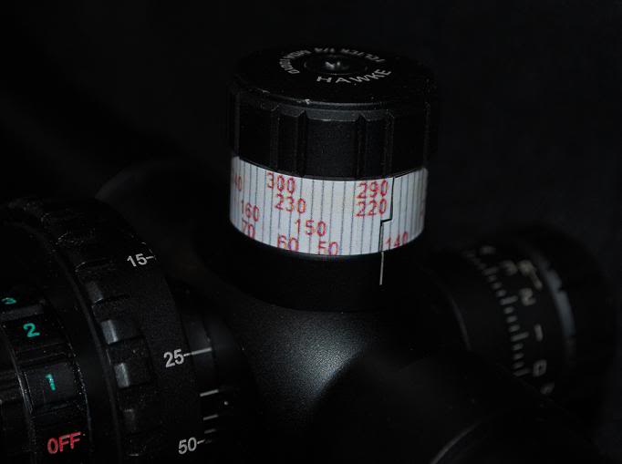 Eso sí, supongo que cada pegatina va asociada a una munición y que, o has calculado la caída con las tablas balísticas o lo has probado en campo (o las dos cosas).