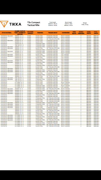 antares308 escribió:kiazara2 escribió:Hola ha todos. Pues en mi afán de renenar el hueco del armero quiero comprar 1 rifle de cerrojo sintético cañon de 50 cm y pesado o semipesado y calibre 308 o similar y con cargador grande de 8 o 10 balas o bien que se le pueda montar cargador grande. He estado mirando por Internet y los modelos que me pueden encajar a lo que quiero son estos. Remington adl tactical. Savage 110 hog hunter. Tikka t3x ctr. Y bergara el unico que tienen con cañon de 50 cm es el hmr en su versión compact. Aunque preferia 1 culata mas tipo caza como la del los otros y no tan táctica. Alguien tiene o ha probado estos nuevos Savage 110 en cualquier versión o los remington adl tactical? Bergara y tikka ya he tenido y se como son de acción cerrojo etc. Los otros no.si se os ocurre algun otro con estas características no estoy cerrado a ningun otro