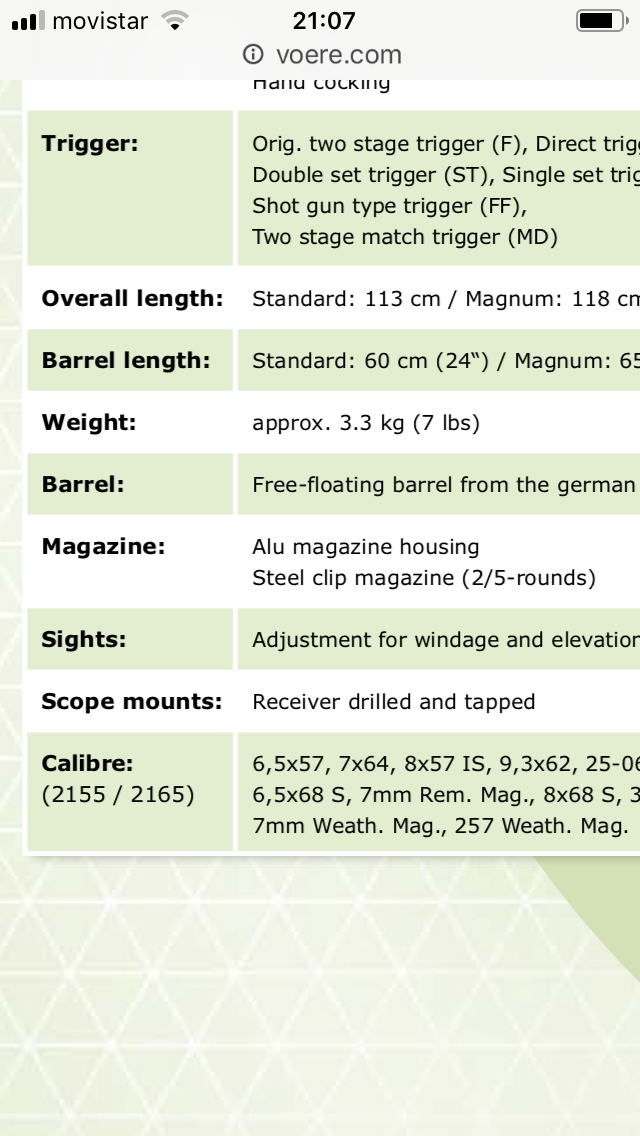 De verdad pesa 2,7kg un Voere 2165 en 30.06????