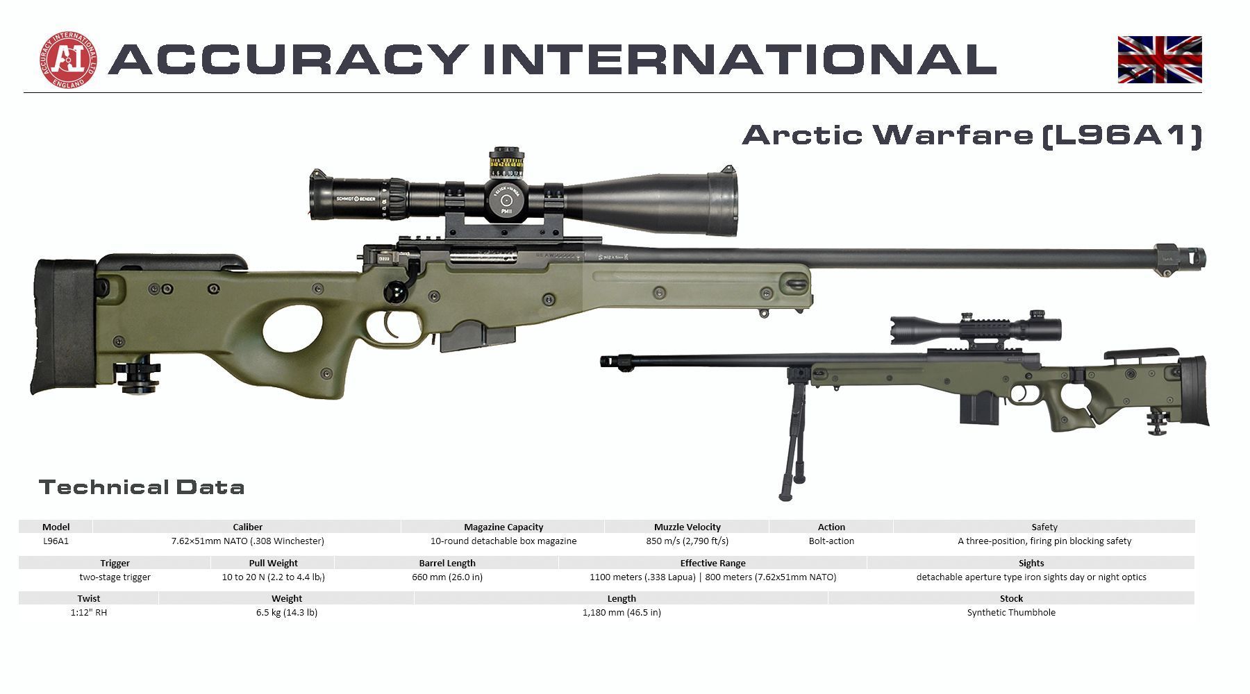 En cristiano, es un fusil ingles de precisión, fabricado por Accuracy International, modelo Artic Warfare......