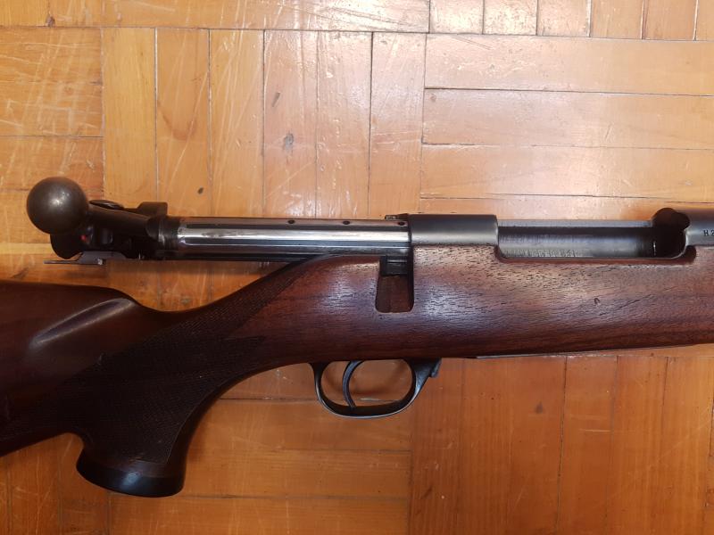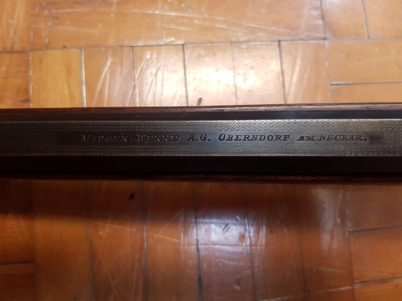 El Mauser es un modelo deportivo, en principio diría un tipo African, por la característica forma de la culata, pero la maneta del cerrojo del tipo M. Había multitud de variantes, sólo en el tipo A, unas 16, a parte de pedidos especiales. Salido de la fábrica de Oberndorf, con puente trasero cuadrado y cañon octogonal, por el numero de serie fabricado en 1932-33.