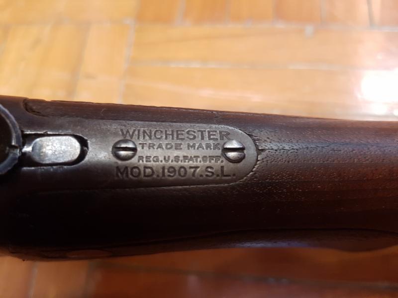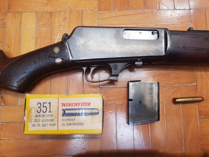 El rifle del calibre .351w, es un Winchester modelo 1907. Es uno de los primeros rifles semi-automáticos de la marca Winchester, cuya producción comenzó en 1906 y fue incluso utilizado en la primera guerra mundial por los observadores de los aviones de guerra. Dejó de producirse en 1957.