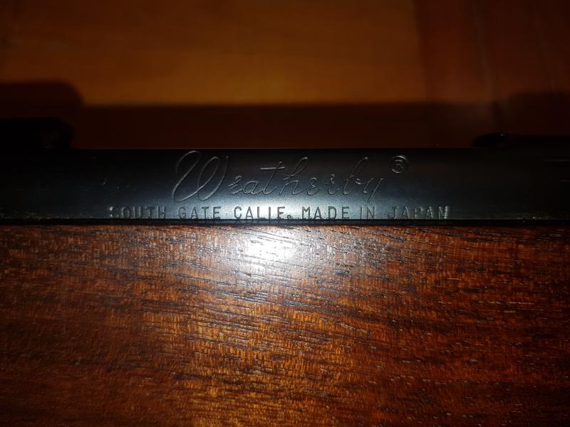 El Weatherby es un Mark V, de la época de fabricación en Japón (Howa) a partir de 1970. Antes y desde el año 1957 las acciones Mark V eran fabricadas por Sauer en Alemania y desde 1994 en USA.