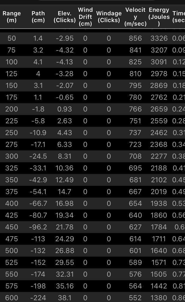 Si nos fiamos de la tabla del fabricante, obviamos el largo de nuestro cañon, o la distancia entre línea de mira y eje del cañon, pues lo que conseguiermos es dormir agusto pero poco mas.