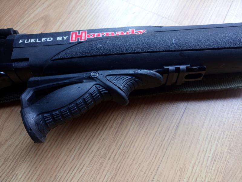 Un guardamanos sintético, se le pone una regleta picatinny y, para mejorar el agarre, una empuñadura angular.