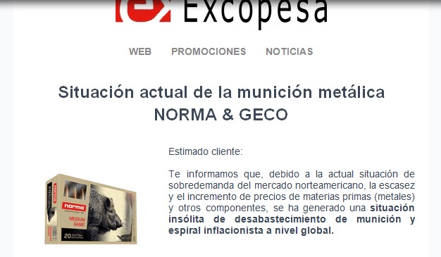 Buenas noches, ante la escasez de munición americana en las armerías ahora Excopesa ha anunciado que Norma y Geco tienen dificultad para producir munición por falta de materias primas para su fabricación. Estamos ante un panorama muy negro en todos los ámbitos y esto huele muy mal a corto plazo. Así que debemos ser previsores y comprar la munición que podamos, sea de la marca que sea, porque se avecinan tiempos difíciles.