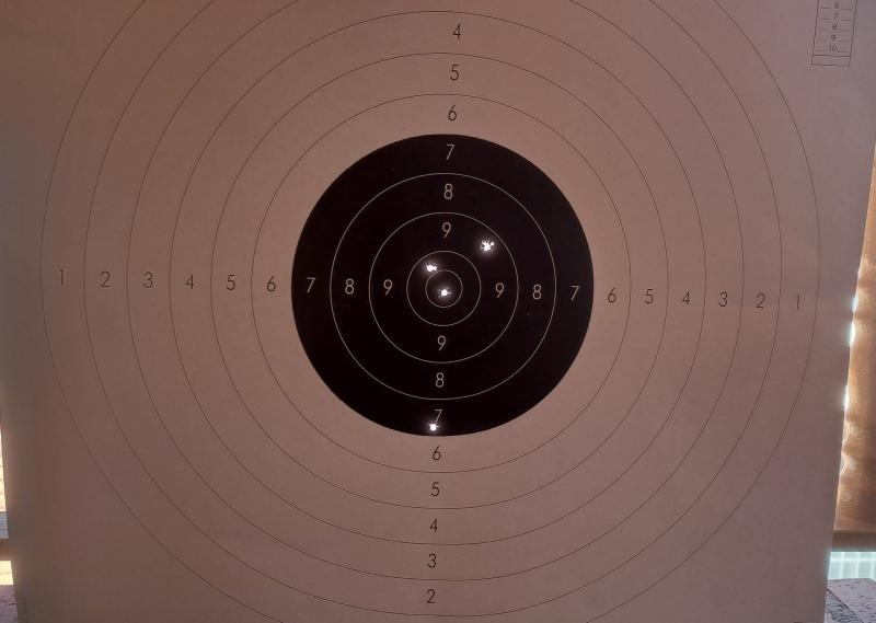 Puesto a tiro a 150 metros, 3,2 cm alto a los 100 y 3,6 bajo a los 200. Tiro más largo 241 metros, apuntando al sitio.