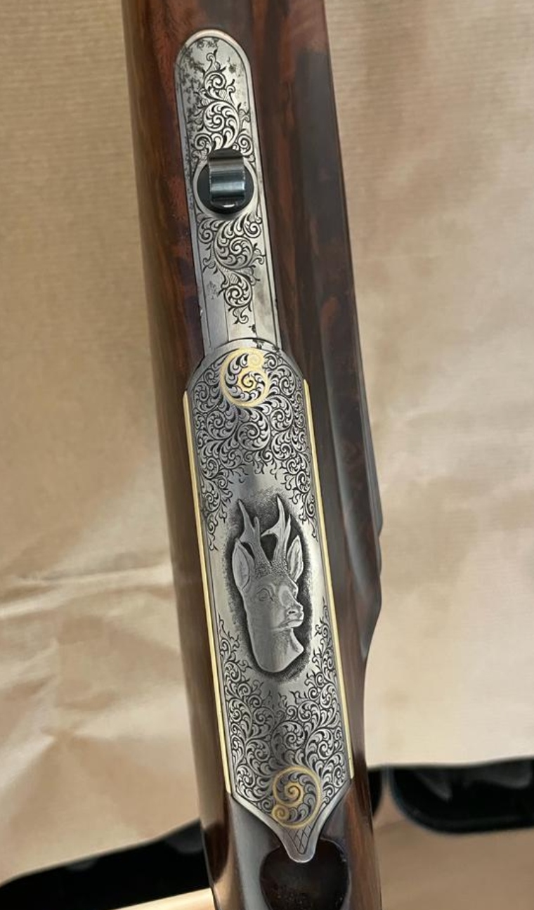 Del Italiano me gusta el doble gatillo al pelo que es mas facil de bajar de peso y al mismo tiempo muy seguro, el largo de cañón y que la pletina larga se luce mas, si lleva las bases Shuler es mucho mejor que otro tipo de montura para un rifle asi, no se desajusta por muchas veces que se quite y se ponga el visor y la terminación de los italianos suele ser mas elegante, no me gusta el cierre Greener ese que lleva es algo que no es necesario hace el rifle algo más costoso de cerrar y no por tenerlo significa que sea más seguro, pero en conjunto me parece un grandísimo rifle.