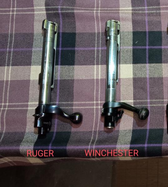 Yo pienso que el ruger es un clásico 98 que se ha mejorado un poco, si es que eso es posible. El rebaje del expulsor se ha quitado de la aleta y se ha desplazado a un lateral, consiguiendo reducir un poco el ángulo de apertura.