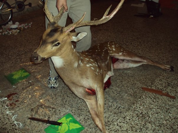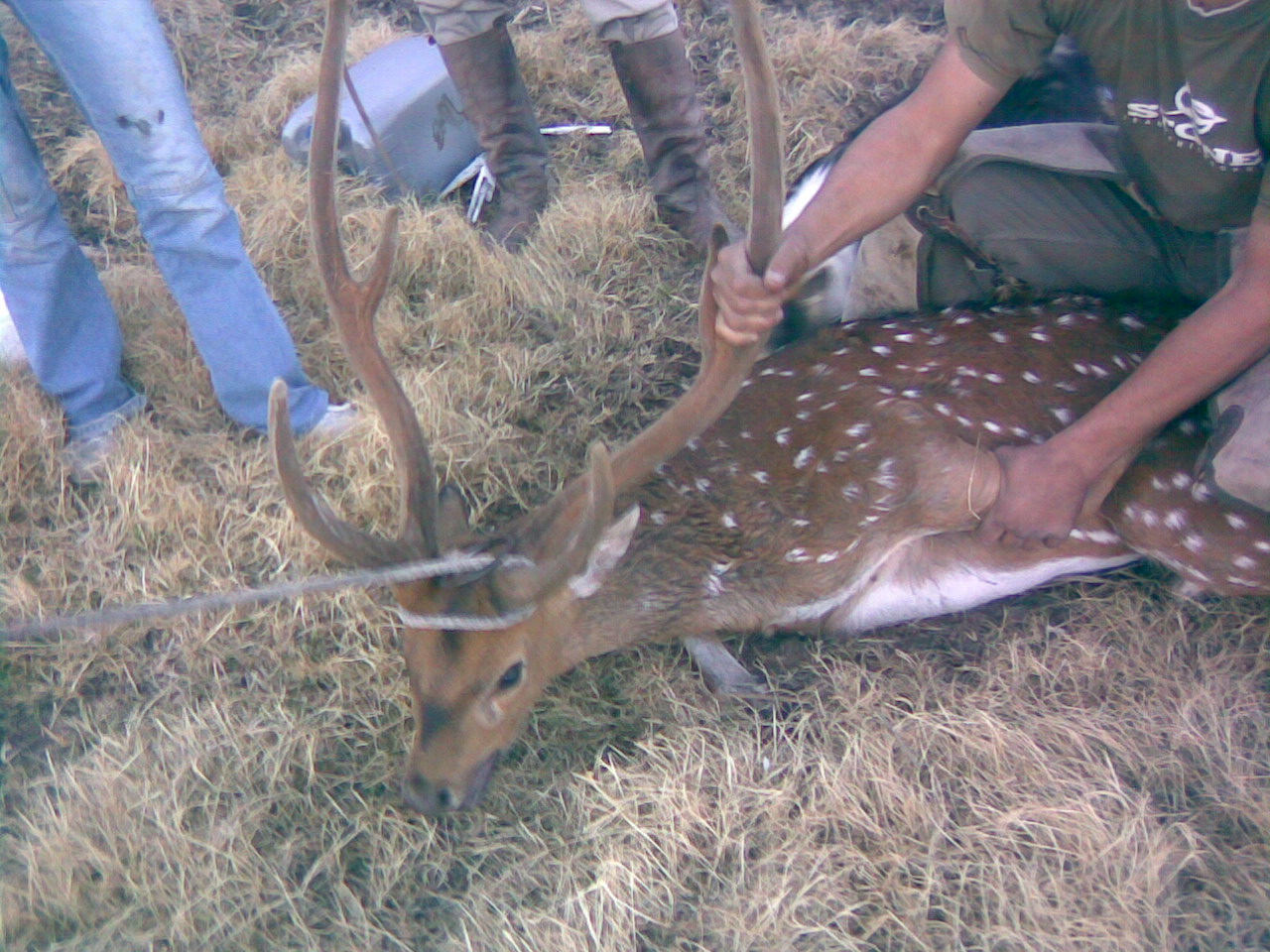El axis de las fotos se metio en un corral de las vacas y fue agarrado con un lazo y luego soltado nuevamente.