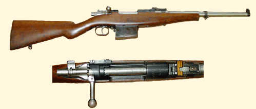 Eso es una carabina Manresa hecha por las Industrias de Guerra de Catalunya durante la Guerra Civil tenia un cargador para 20 cartuchos y estaba construida sobre la base de una accion M-93 vamos sobre una accion de Mauser Oviedo. Se fabricaron unos 30 ejemplares uno de los cuales, el de la fotografia, habia estado expuesto en el Museo Militar de Montjuic, esta en concreto creo que era la nº 28.