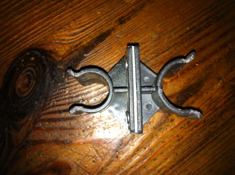 En realidad son 2 soportes de escoba de los que venden en los todo a 100. Los unes con remaches, lo pintas de negro mate, y para evitar sustos, con unas buenas gomas, lo sujetas y listo.