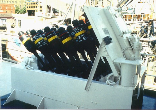 Es un triple mortero lanzador de cargas de profundidad (limbo mortar mk10)
