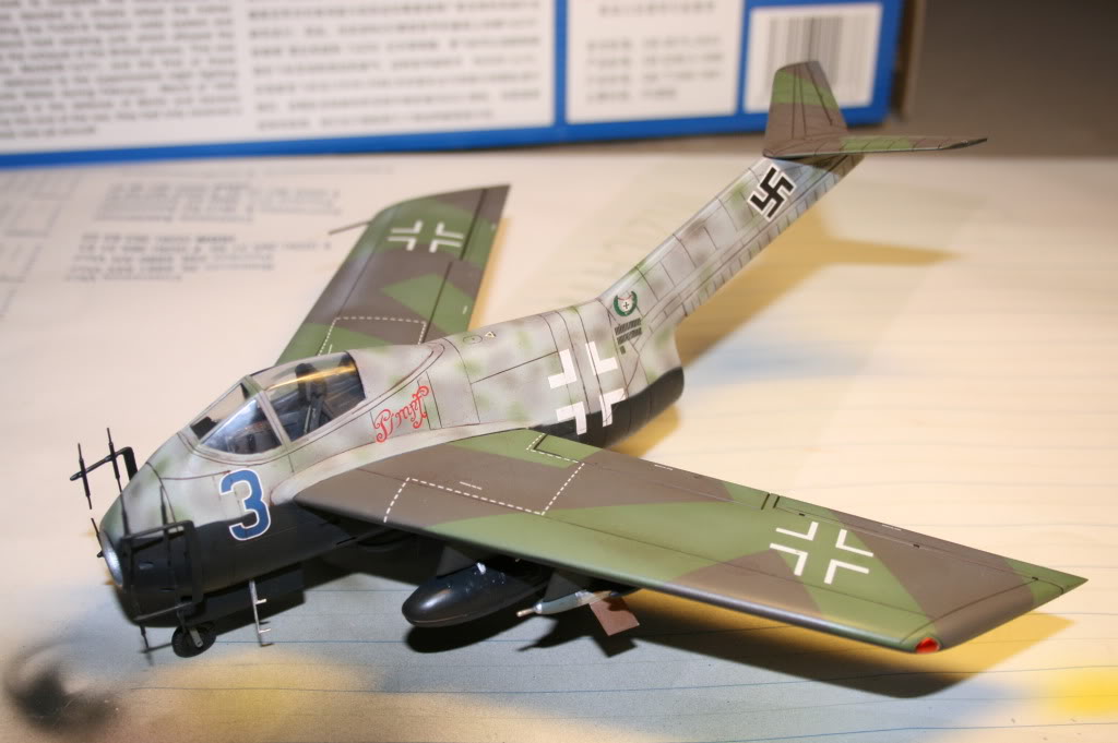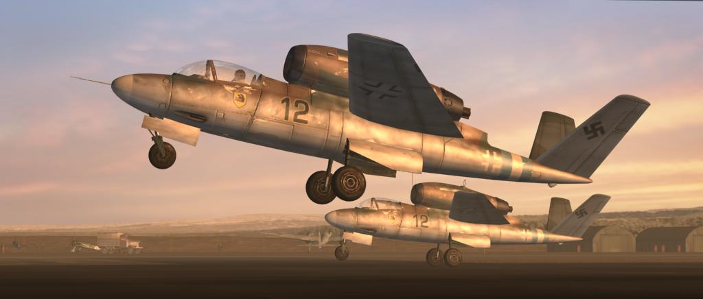 Yo voto por el ta 183, aunque tengo por ahí bastante material del He 162, incluso alguno con colores españoles (al fondo de la foto se ven un par de ellos operacionales) :mrgreen: