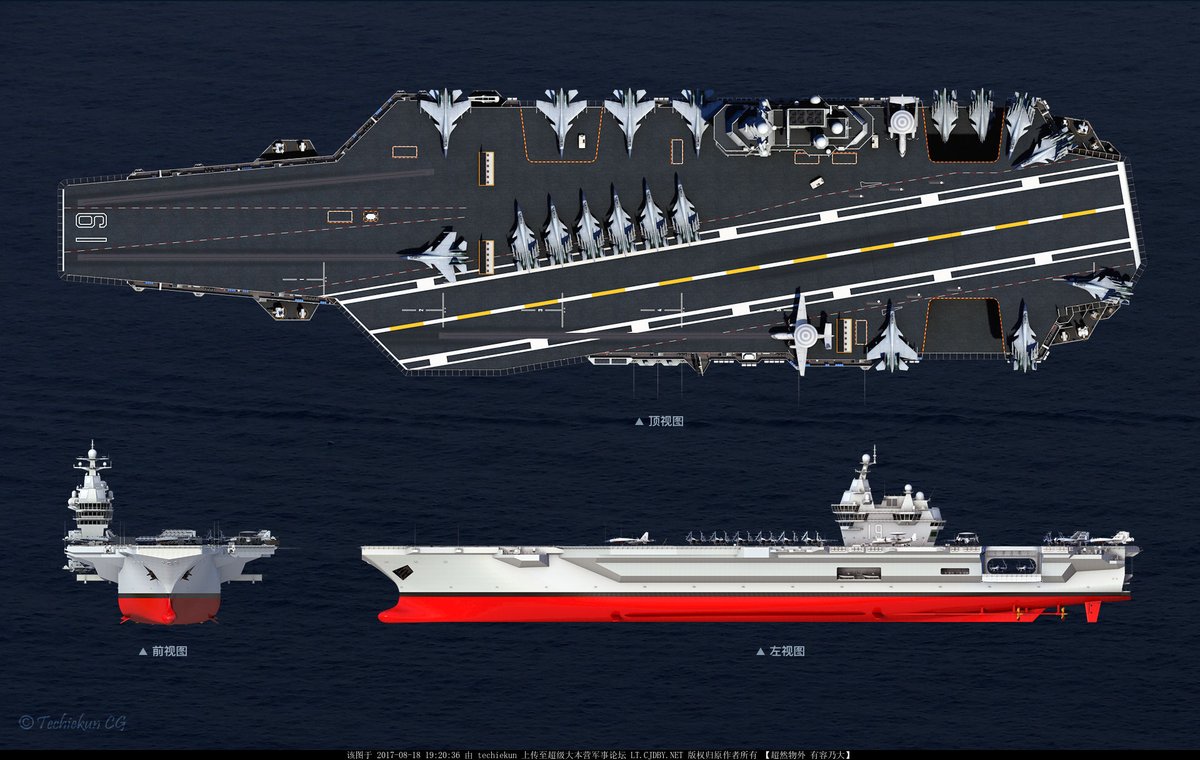 Los dos que tiene, me lo tomo como una forma de adquirir experiencia, de practicar... Especialment el Liaoning, un casco viejo, reformado... El segundo, el Shandong, no deja de ser una copia mejorada, pero hecho totalmente por china, ahora han practicado hacerlos. Eso si, por el tipo de buque, su ala aérea no puede portar mucho peso, y no es comparable a los F18 de la Navy por supuesto