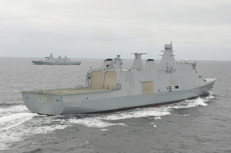 Dinamarca tiene un tipo de fragatas como nuestras F-100, pero sin ser tan sotisficadas, que cuentan con espacio interno y rampa popel para el desembarco de unidades anfibias así como lanchas y otros medios.