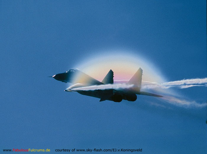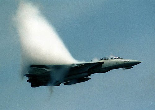 Aqui os dejo unas preciosas imagenes del efecto de rotura de la barrera del sonido y su efecto sobre el aire.