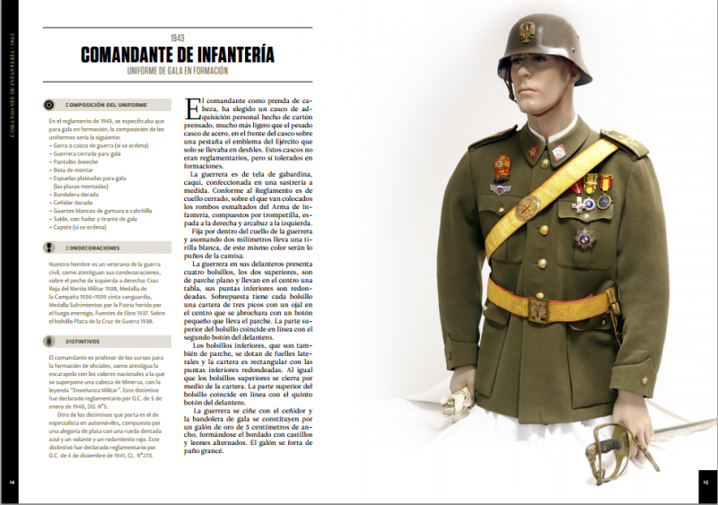 En el primero de ellos se desarrollan con gran rigor y todo lujo de detalles hasta 26 uniformes de la época así como las numerosas condecoraciones y distintivos que lucen sobre ellos.