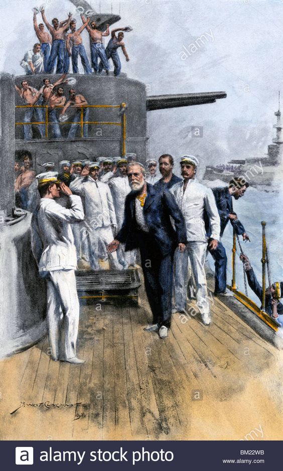 Copio/pego de un diario en el que entrevistan a los descendientes del Cervera, y de paso indagan un poco en la historia (no es muy difícil): Robley D. Evans, comandante del acorazado Iowa, que hizo prisionero a Cervera recibiéndole con honores militares: «Nada hay registrado en las páginas de la historia que pueda asemejarse a lo realizado por el almirante Cervera. El espectáculo que ofrecieron a mis ojos los dos torpederos, meras cáscaras de papel, marchando a todo vapor bajo la granizada de bombas enemigas y en pleno día, sólo se puede definir de este modo: fue un acto español».