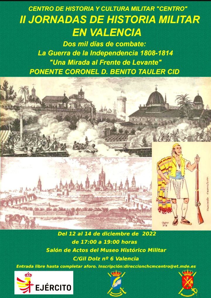 En el marco del Plan de Divulgación de la Cultura de Defensa de 2022, el Centro de Historia y Cultura Militar Centro (Valencia) , organiza las II Jornadas de Historia Militar, con la siguiente información: