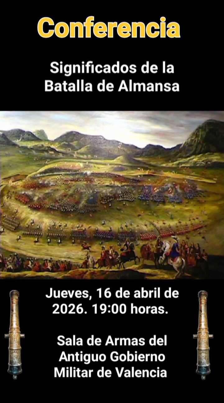 El próximo 16 de abril de 2026, a las 19:00 horas, la Sala de Armas del Antiguo Gobierno Militar de Valencia, acogerá la Conferencia, SIGNIFICADOS DE LA BATALLA DE ALMANSA, organizada por la ASOCIACIÓN VALENCIANA DE HISTORIA MILITAR “General Navarro Sangrán”, dentro del Ciclo de Conferencias, UN RECORRIDO POR LA HISTORIA DE ESPAÑA.