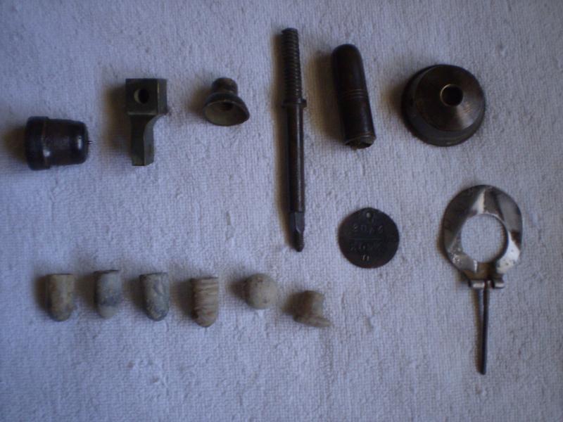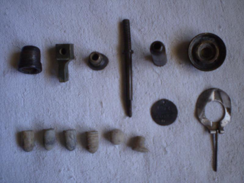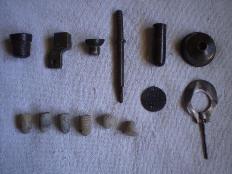 Pues parecen mas bien puntas de munición de pistola de diversos calibres diría yo lo demás piezas de ametralladora o fusilametrallador ya que parecen toscas y grandes