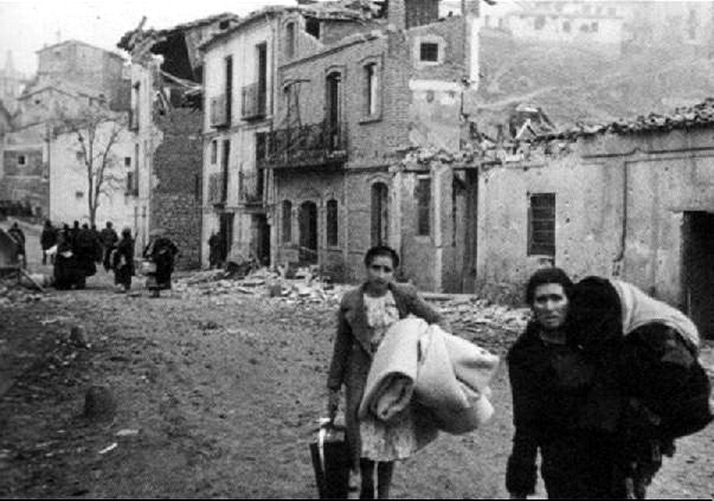 Esta foto debe de haberse hecho en los dias siguientes a la toma de la ciudad o cuando la toma estaba muy avanzada ya que la comandancia de los sitiados nego el poder abandonar la ciudad a la poblacion civil bajo pena de muerte , mientras que los republicanos sacaron a toda la poblacion civil que quiso irse antes de estar otra vez sitiados el grueso de la poblacion llego a pueblos como la Puebla de Valverde o Sarrion , no sin bastantes penalidades debido a que los aviones nacionales hacian incursiones bastante amenudo