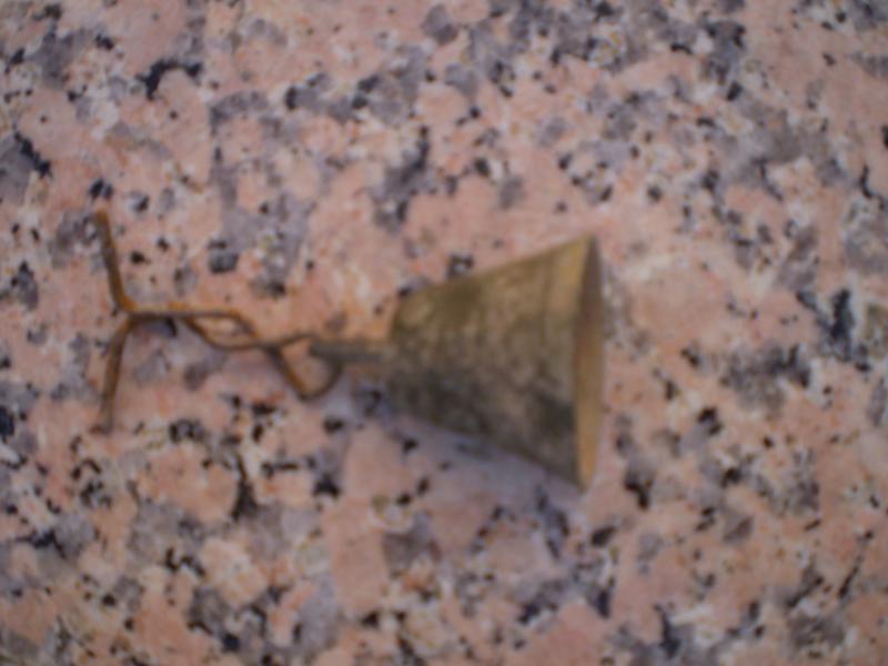 Hace muchos dïas que comente en el foro, que me había encontrado en una paridera cerca de Sigüenza ,que hacía de taller a las tropas de franco una lata de aceite y el embudo , yo creo que son de la gc. ¿ que os parecen , ? , la campana de la foto estaba en las alambradas de una treinchera .