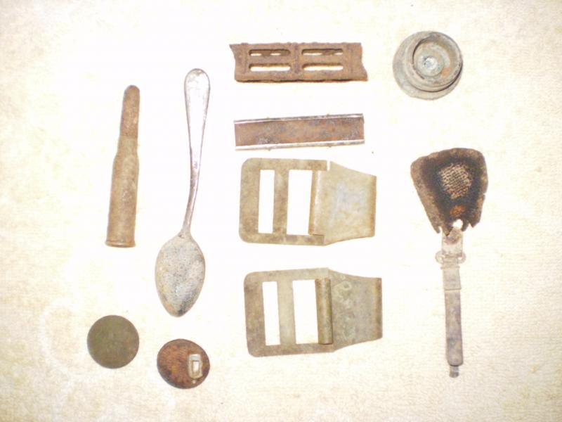 Hola , paseando paseando , siempre se encuentra algo , el cargador del 7x57 es un material increible pone mexico esta como el primer día ,el otro cargador es del 303 ingles , una chapa de embutido , es muy curiosa y una moneda muy desgastada , el pasador de una granada de mano , cuchara, que me podeís decir ? el cartucho es un 8x50R Malimcher Steir de 1921 , bueno y poco más , un saludo .