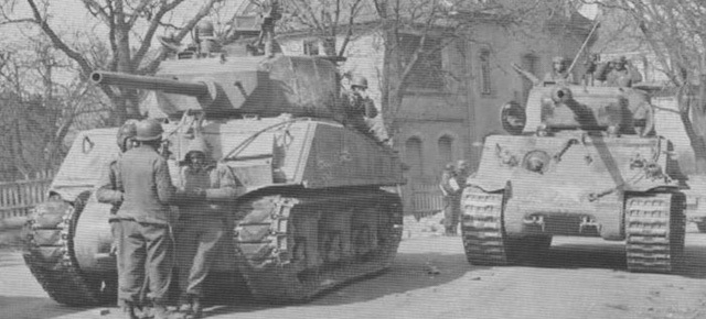 Pero a pesar de ello, en mas de una ocasión los Sherman se las vieron frente a carros alemanes. Los americanos tenían los Sherman como armas de apoyo de la infantería o como ruptura en caso de necesidad.