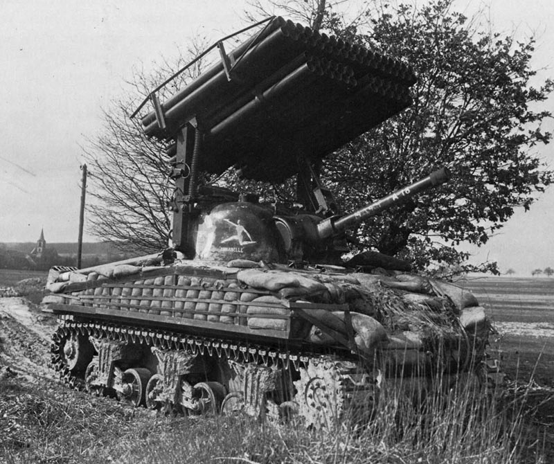 Sin duda que un Panther o Tigre, o Panzer IV de cañón largo le daba igual los sacos, pero almenos frente a los lanzacohetes o lanzagranadas alemanes algo podian hacer.