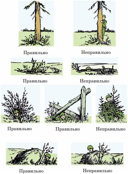 Típica lamina de manual de infantería de que hacer y que no hacer para lograr un buen ocultamente o cubierta