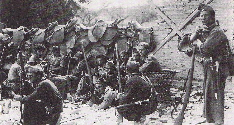 galil escribió:Mirar que imagen más curiosa de la GCE, fijaros en el parapeto echo con las sillas inglesas, así como lleban la bayoneta del mod 1916 con el mod. 1893.