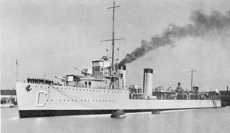 Jurgen, yo diría que es un destructor británico, contruído antes de la II GM, pero puede ser de cualquiera de las siguientes clases: A, B, C, D, E, F, G, H.