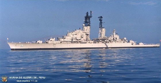 Este es el crucero peruano BAP Almirante Grau, de la clase holandesa De Ruyter. Estaban en construcción cuando Holanda fue ocupada por Alemania. Los alemanes decidieron seguir adelante con el proyecto y usarlos como cruceros ligeros de entrenamiento. Fueron botados como KH1 y KH2 y ...poco más. Al acabar la guerra entraron en servicio en la MArina holandesa y pooc después fueron vendidos ambos a Perú, realizandole antes al KH2, que sería luego el BAP Aguirre, una transformación para convertirlo en crucero portahelicopteros con un hangar fijo para tres helicopteros.