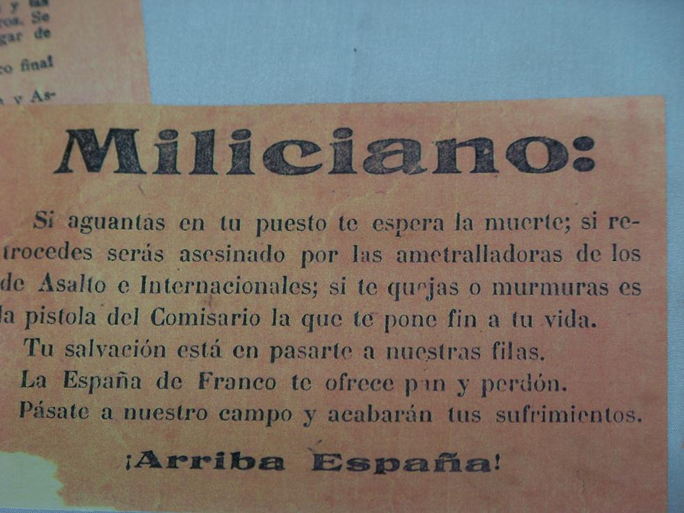 En el “libro” solo habla de él, de él y de él, nada de su padre tal y como promete en la contraportada, y muy bonita la foto que le sacan cuando “se va a la guerra” en enero de 1939 para volver de permiso un mes después, muy gracioso también aquello de irse a la guerra con 100pts, puñetero cabron 100 Pts. de la época que le sirven para pagar a otros soldados por que le laven la ropa, cuando en el frente lo que la mayoría comían eran piedras.