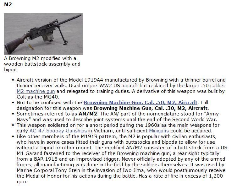 Browning 1919 A6, intentó ser el equivalente a la MG42 y se hizó famosa por su cadencia, fue utilizada en un desembarco en el Pacifico por un Sargento del USMC, el que silenció varias posiciones japonesas regresando varias veces a la cabeza de playa DESCALZO y entre el fuego cruzado a recojer municiones.