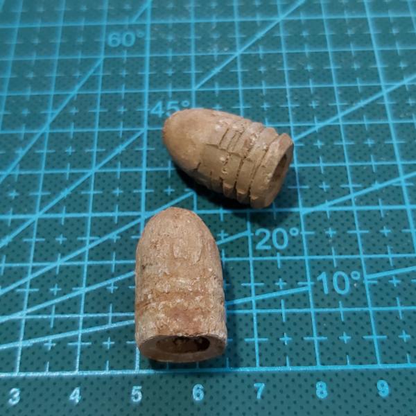 Hace un tiempo, en una zona donde hubo enfrentamientos durante la guerra civil española, encontré diversas balas. La mayoría eran tipo Mauser, de 7mm vaya. Pero exactamente en la misma zona encontré diversas piezas de otras que me llamaron la atención. Tienen 3 o 4 estrías en la base, son huecas y muy pesadas, y miden aproximadamente 15mm de diámetro y 25mm de largo.