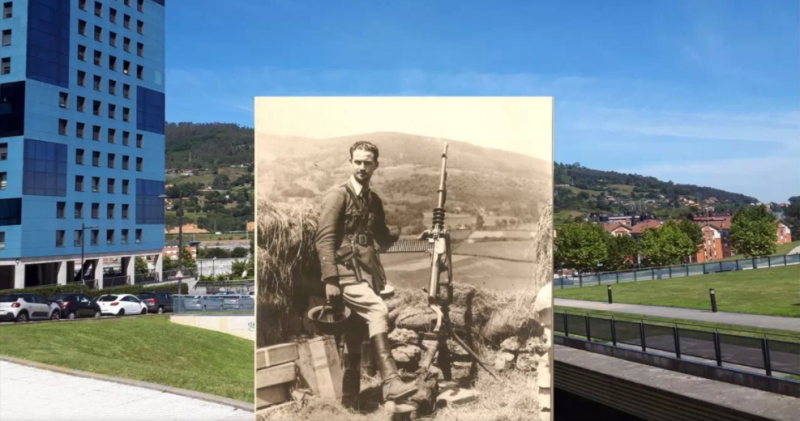 Esta espectacular fotografía fue tomada durante los primeros meses de la Guerra Civil en alguna de las posiciones nacionales del Cerco de Oviedo y fue rescatada hace algún tiempo en una Feria de Antigüedades en Asturias