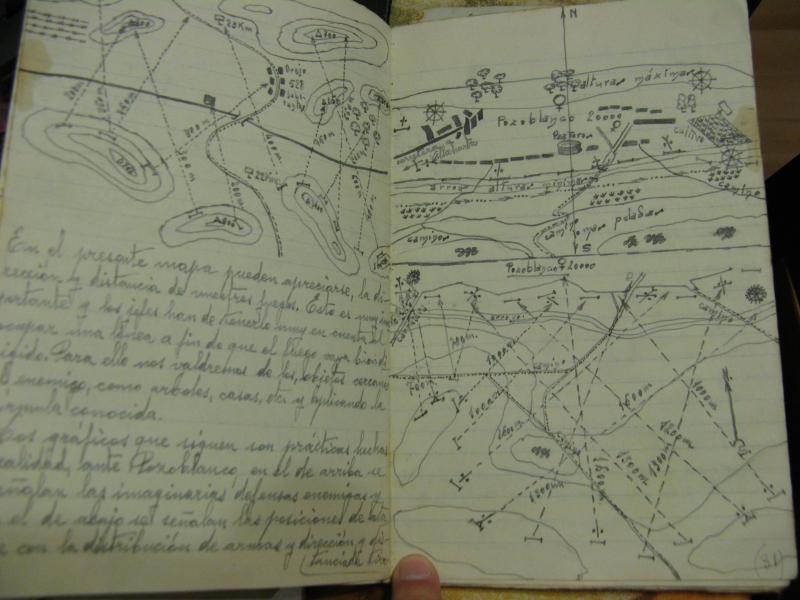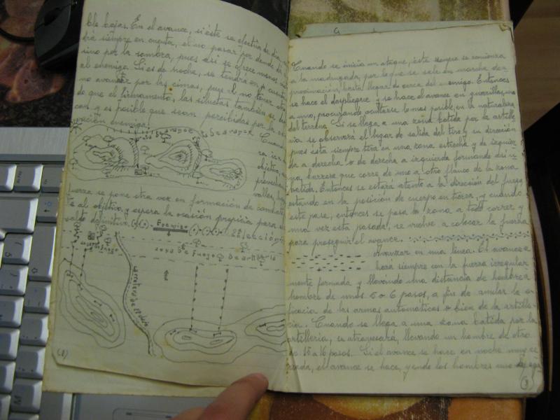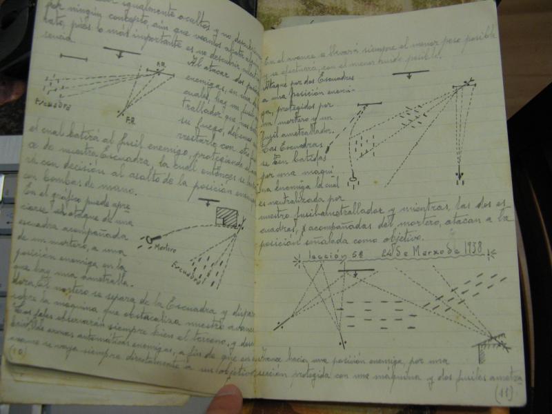 Os muestro una muestra de un librillo manuscrito por mi abuelo (93 años y aún vivo) a su paso por la escuela de sargentos de pozoblanco el año 1938 estando en el ejército republicano (por obligación, el no quería ir a la guerra).