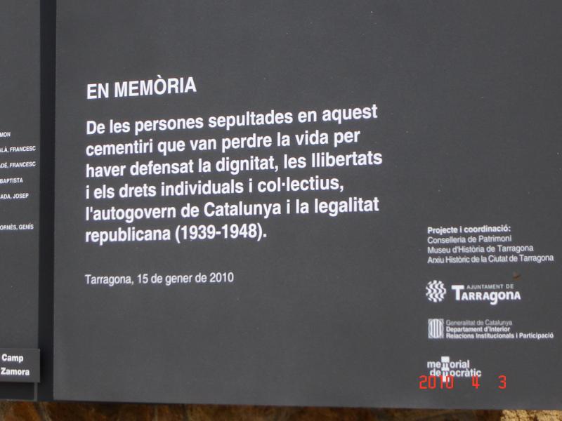sip estoy muy contenta por mi abuela al principio no habia el monumento y los papeles de las fosas comunes aun estaban en el cementerio!! en los archivos del cementerio ,casualidad suerte lo que sea pero paso a paso el camino me dirijio a la carcel de tarragona y d ela carcel al cementerio donde estaba mi bisabuelo.