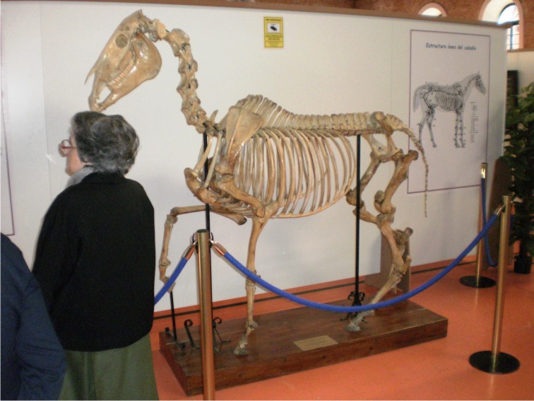 Se exponía, hasta un esqueleto completo de uno de ellos y una representación en cartón piedra de uno de uso militar con toda su impedimenta