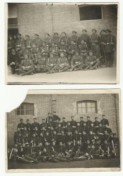 La superior debe estar fechada sobre 1930, llevan el uniforme completo del reglamento de 1926, pero el cabo y el sargento llevan ya gorra de plato, que apareció para la tropa en 1930...en las gorras parece que llevan un máquina de tren, si así fuera, serían del regimiento de ferroviarios.