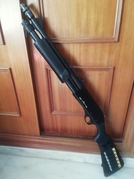 Yo tambien tengo esa escopeta el modelo mas corto, le quité la culata plegable y la dejé solo con el pistolete como uno del foro que hizo fotos de ella, lo que no se si es legal con la ultima modificacion del reglamento de armas.