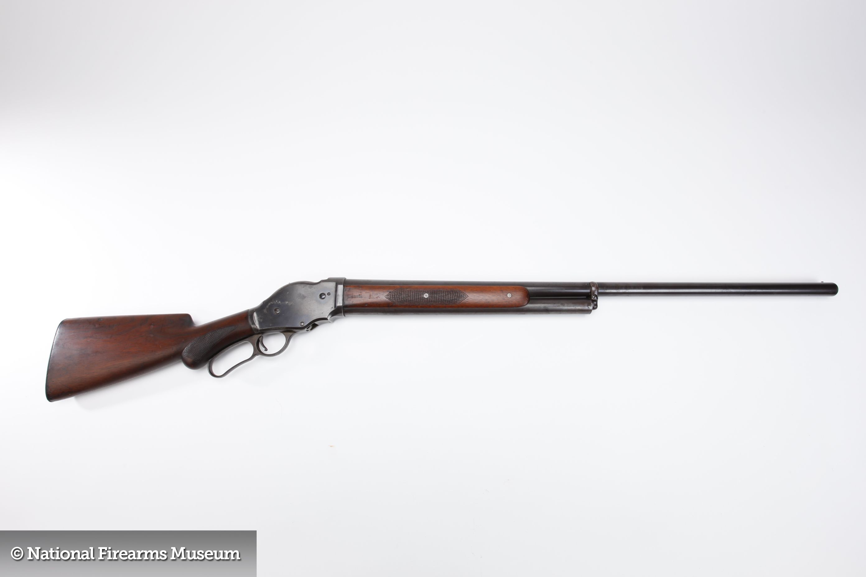 En el año 1887 de la mano de Winchester ve la luz la primera escopeta de repetición de cartuchos diseñada por John Moses Browning, el modelo Winchester 1887 es una escopeta de palanca que está inspirada en los rifles de esta marca de una larguísima tradición y que el propio John había rediseñado y perfeccionado su sistema dejando atrás los tradicionales atascos e interrupciones típicos de este sistema.